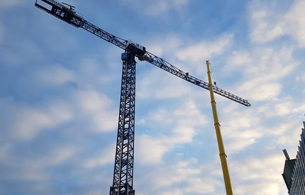 I början av året monterade vi en kran i Mölndal, modell Comansa 21 LC 550. Kranen hade ursprungligen en krokhöjd på ca 54 meter, vilket inte riktigt räcker för hotell som ska bli 22 våningar högt. Med hjälp av en klätterbur har vi genomfört den planerade höjningen av kranen så nu mäter den ungefär 92 meter. Stagningen sitter på ca 38 meter.