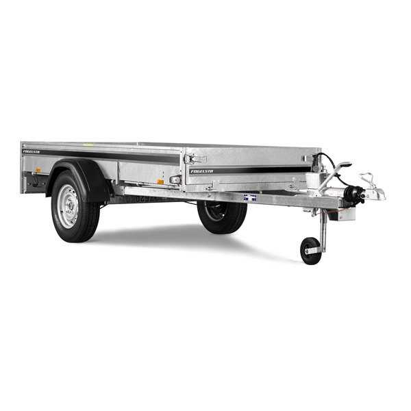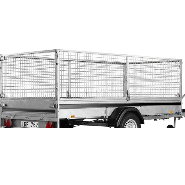 Släpvagn enaxlig, totalvikt <750 kg. Nätgrindar.